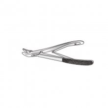 Angled on flat, fine jaws, curved handles, screw joint